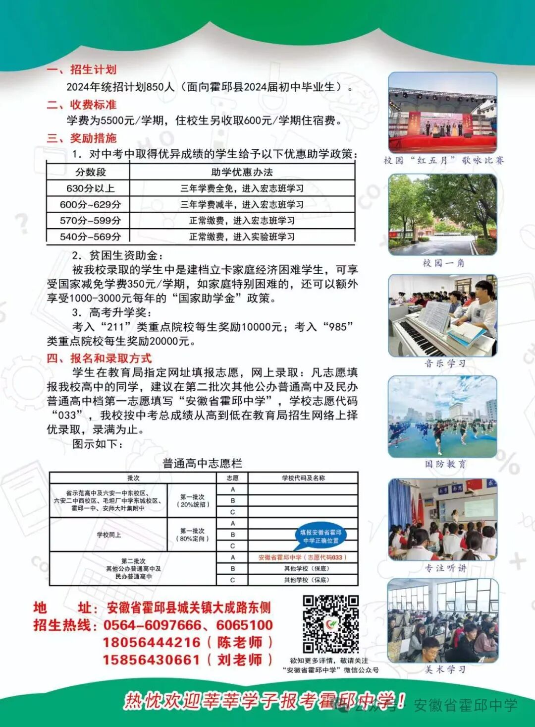 霍邱中学2024级高一新生招生简章