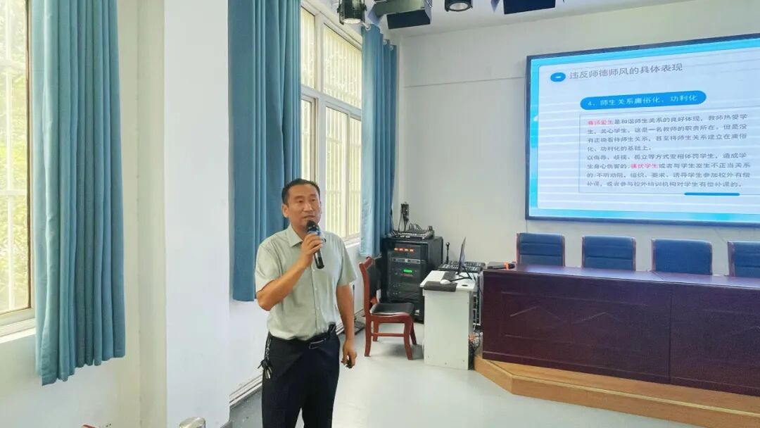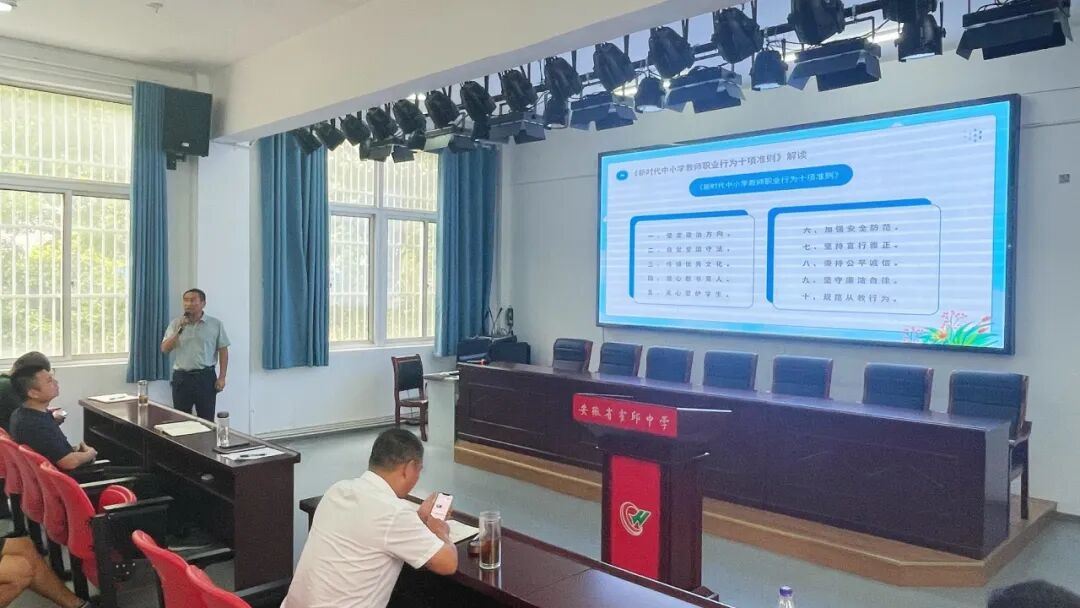 课堂改革焕活力 师德师风铸师魂发表时间:2024-08-26 15:55 ![]() 为进一步提升教学质量,优化学生学习环境,同时加强教师队伍的师德师风建设,霍邱中学于8月26日上午在学校报告厅举行了全员培训会议。本次会议由教学副校长胡大海主持,全体教师参与会议。 01 ![]() ![]() 会议伊始,教务处副主任白兆良以“聚焦课堂改革,激发教学活力”为主题,作了全面而深入的报告。白主任的报告围绕三大核心要点展开: 一是激情晨读规范要求。他强调,晨读是学生学习生活的重要组成部分,应当充满激情与活力。为此,学校将制定更为细致的晨读规范,包括朗读的时间安排、内容的选择、朗读氛围的营造以及学生参与度的提升,旨在通过激情晨读,激发学生的学习热情和自信心,特别是时间管理上,前25分钟激情晨读,后5分钟检查,检查结束教师批阅反馈,学生订正,形成闭环。二是课堂规范要求。白主任指出,良好的课堂秩序是教学质量的重要保障。学校将进一步完善课堂管理制度,明确教师与学生的课堂行为规范,促进师生互动,提高课堂效率,确保每一堂课都能成为学生成长的坚实阶梯。三是“三零”自习规范要求。针对自习时间,白主任提出了“零抬头、零说话、零走神”的严格要求,旨在培养学生自主学习的良好习惯,营造一个安静、专注、高效的自习环境,为学生的自我提升提供有力支持。 02 ![]() ![]() 随后,校长助理张本俊以“新时代下的师德师风建设”为题,进行了深刻的警示教育报告。报告内容涵盖五个方面: 一是新时代下的师德师风。张校助首先阐述了新时代背景下师德师风的重要性,强调作为教师,应当时刻铭记立德树人的初心使命,以高尚的师德引领学生健康成长。二是违反师德师风的具体表现。他通过具体案例,深入剖析了当前教育领域存在的违反师德师风的行为,警醒全体教职工引以为戒,自觉维护教师队伍的良好形象。三是《新时代中小学教师职业行为十项准则》解读。他详细解读了教育部颁布的《新时代中小学教师职业行为十项准则》,要求全体教师深入学习,内化于心,外化于行,切实做到以德立身、以德立学、以德施教。四是违反师德师风的典型案例。通过剖析典型案例,进一步强调了师德师风建设的重要性和紧迫性,要求全体教职工警钟长鸣,时刻保持清醒头脑,坚决杜绝任何违反师德师风的行为。五是做“四有”好老师,当育人大先生。最后,张校助号召全体教师争做有理想信念、有道德情操、有扎实学识、有仁爱之心的“四有”好老师,努力成为学生锤炼品格、学习知识、创新思维、奉献祖国的引路人。 03 ![]() ![]() 此次会议,不仅为霍邱中学新学期的教学工作指明了方向,也为加强师德师风建设、提升教育教学质量奠定了坚实基础。全校教职工纷纷表示,将以此次会议为契机,不忘初心,牢记使命,以更加饱满的热情和更加扎实的作风,投入到新学期的教育教学工作中去,共同推动霍邱中学教育事业再上新台阶。 ![]() 图文:刘应洋 编辑:刘应洋 审核:徐新春 |